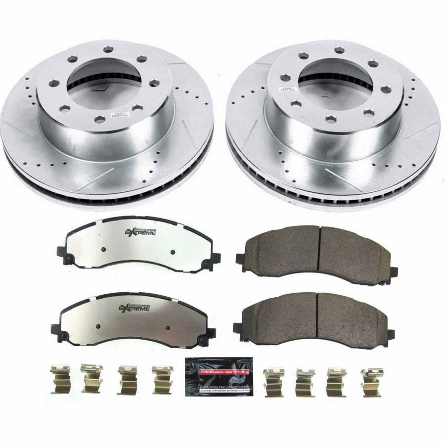 Your Power Stop Truck & Tow Brake Kit includes Z36 metallic brake pads and Power Stop cross-drilled and slotted rotors. This performance brake package was specially created to improve the performance of your large vehicle, and it can enhance stopping power by as much as 17%. The included rotors have been drilled and slotted to dissipate heat and lessen brake fade. These advanced rotors also sweep clear brake dust for a better initial bite between the surface of the rotor and your heavy-duty carbon ceramic brake pads. Each kit installs easily and provides your truck or SUV with a straight OEM-style fit with optimum function.