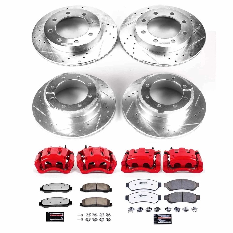 Your Power Stop Truck & Tow Brake Kit includes Z36 metallic brake pads and Power Stop cross-drilled and slotted rotors. This performance brake package was specially created to improve the performance of your large vehicle, and it can enhance stopping power by as much as 17%. The included rotors have been drilled and slotted to dissipate heat and lessen brake fade. These advanced rotors also sweep clear brake dust for a better initial bite between the surface of the rotor and your heavy-duty carbon ceramic brake pads. Each kit installs easily and provides your truck or SUV with a straight OEM-style fit with optimum function.