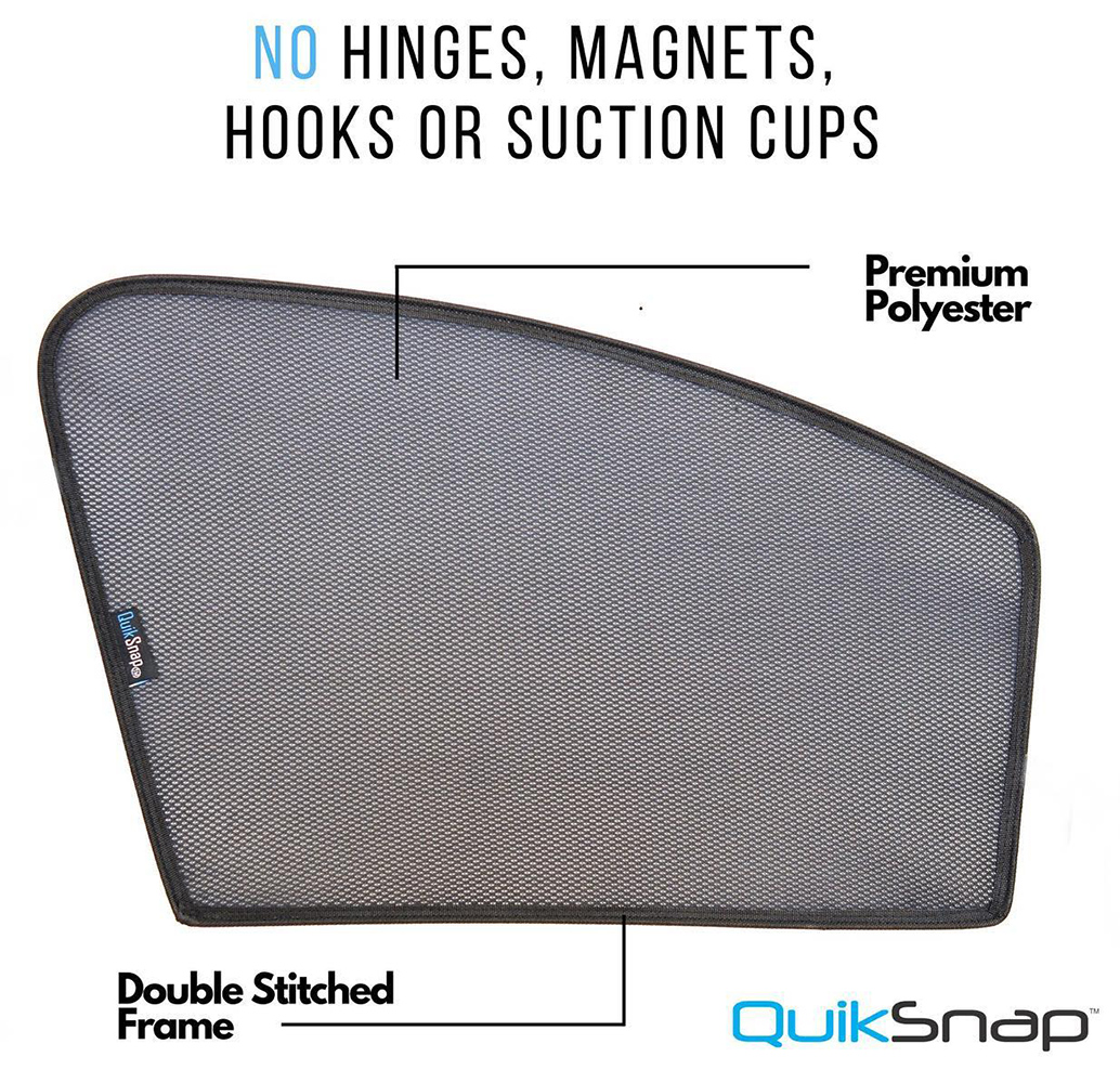 - QuikSnap Car Side Window Sun Shades shield your interior from the sun using your side windows