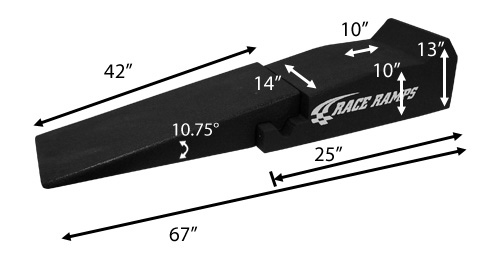 The incline is 10.75 degrees, but optional Xtenders will lower the incline further for ultra-low clearance vehicles. NAPA AUTO PARTS is proud to offer the Race Ramps Car Ramps, made in the U.S.