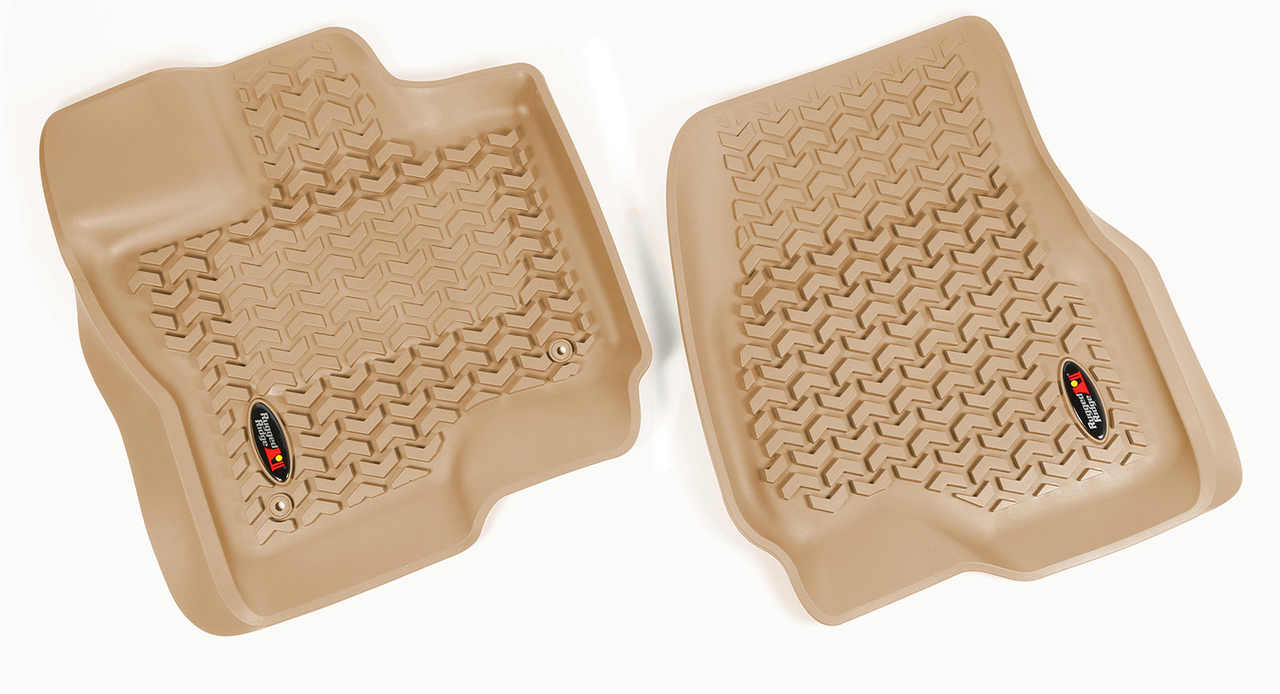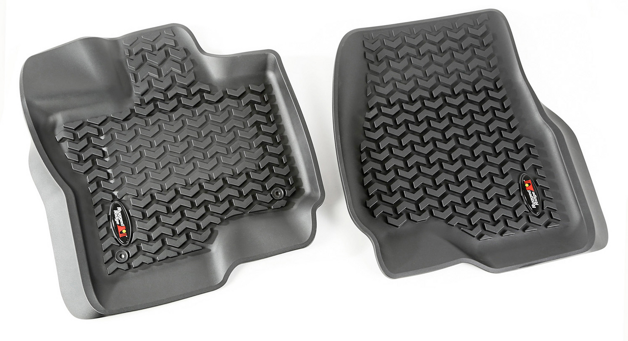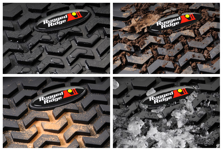 Rugged Ridge took the time to engineer these floor mats to conform perfectly to the floor of your vehicle's interior. That means you get uninterrupted protection from side to side. With their patent-pending "Deep Tread" design, the mats channel liquids away from shoes and pants. The high-walled edges contain those liquids and keep them from spilling out onto your vehicle's carpet.