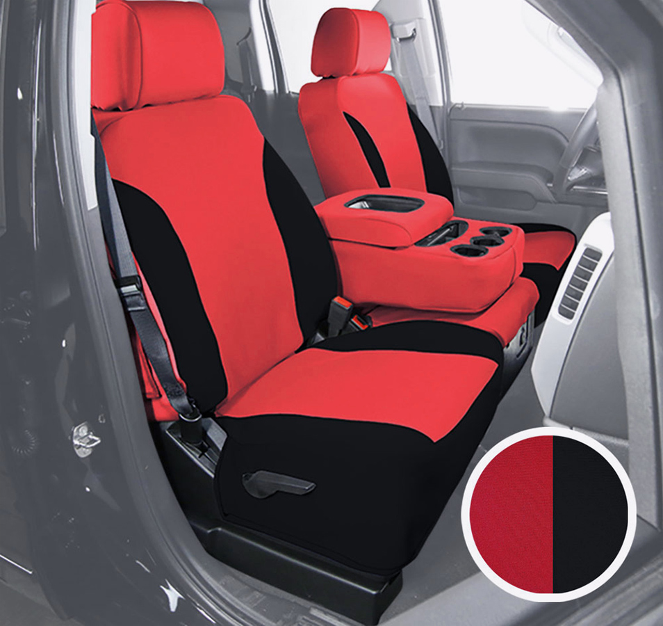 Match your existing interior aesthetic or go for a bold contrast with plenty of color options: solid Black, Blue, Charcoal, Gray, Red, Tan or two-tone options with these colors accented in Black. Your budget-friendly, durable Neosupreme Seat Covers are customized using precise digital patterns for a perfect match to your exact make and model car, truck, van or SUV.