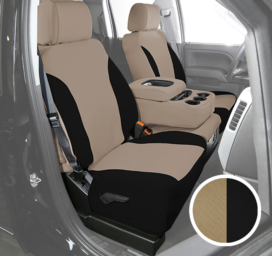Match your existing interior aesthetic or go for a bold contrast with plenty of color options: solid Black, Blue, Charcoal, Gray, Red, Tan or two-tone options with these colors accented in Black. Your budget-friendly, durable Neosupreme Seat Covers are customized using precise digital patterns for a perfect match to your exact make and model car, truck, van or SUV.