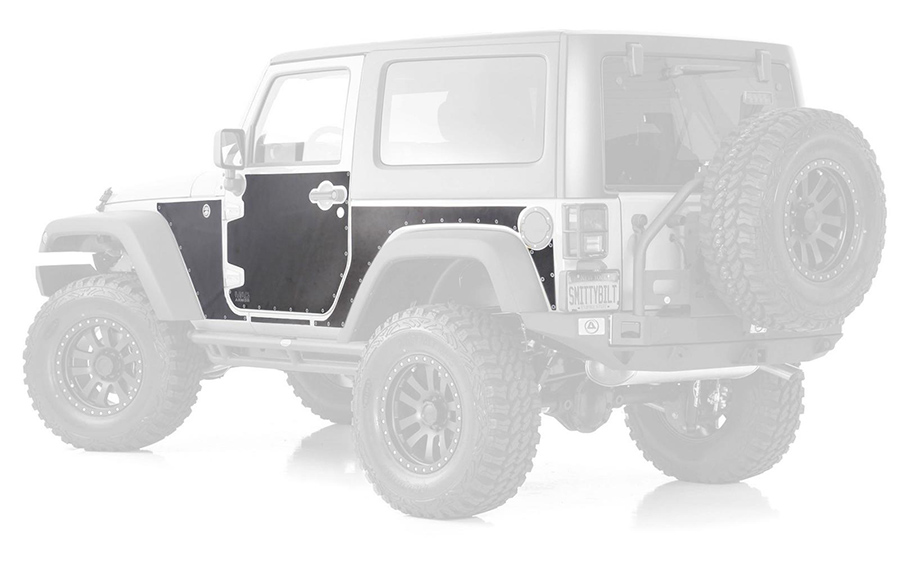 This Smittybilt Armor provides the tough off-road barrier you need thanks to the 1.6mm thickness, which keeps your paint finish underneath unscathed. This aftermarket automotive accessory package is highway rated for up to 80 MPH and temperatures from 0° to 130° F.