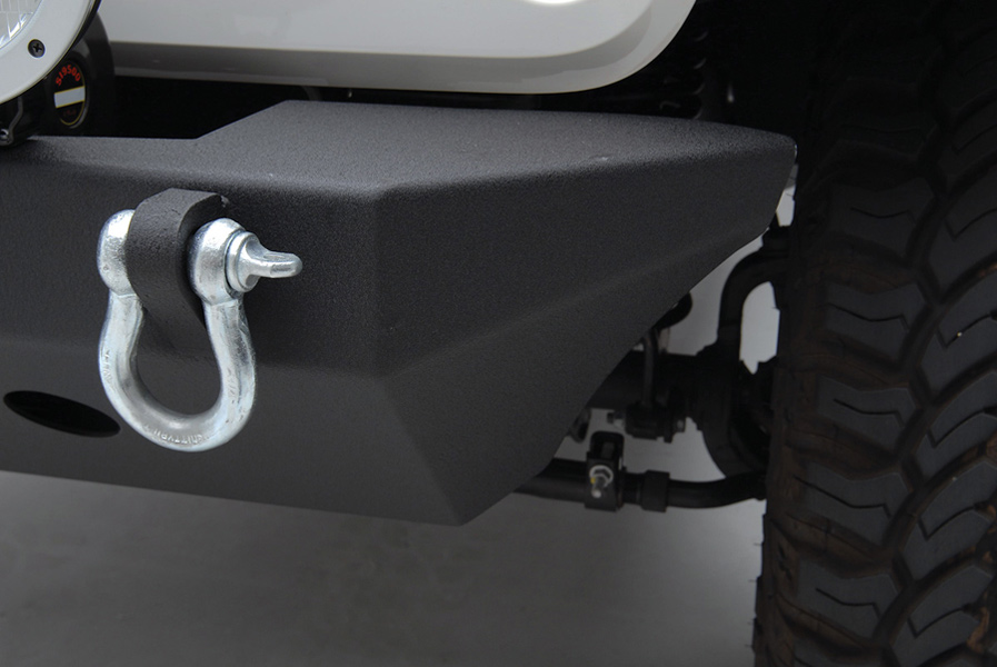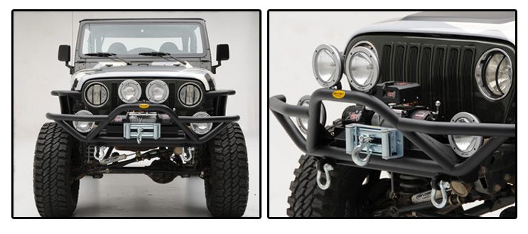 Designed for avid off-roaders, this bumper protects the body of your Wrangler from any obstacle that lies in your path. Made from durable 3/16-inch steel, this bumper is made to last. Thanks to a 15,000-lb line pull winch mount, D-ring mounts and a tubular brush guard, this front bumper is armed to take on the outdoors. With a fully adjustable tire mount, D-ring mounts, and 2-inch receiver hitch, the SRC is equipped to tackle, tow and tame just about anything. A single-piece weld design promises enhanced performance while a two-stage matte black powder coat exterior layer protects against rust and deterioration. With a custom fit to your specific Wrangler that uses OEM mounting positions, you'll enjoy a simple, bolt-on installation process without any drilling required!