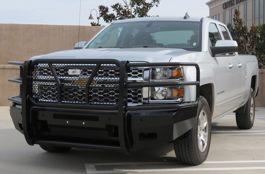 - Durable bumper and grille guard made with single-piece, flat-rolled steel