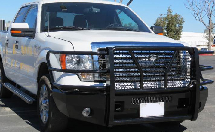 - Durable bumper and grille guard made with single-piece, flat-rolled steel