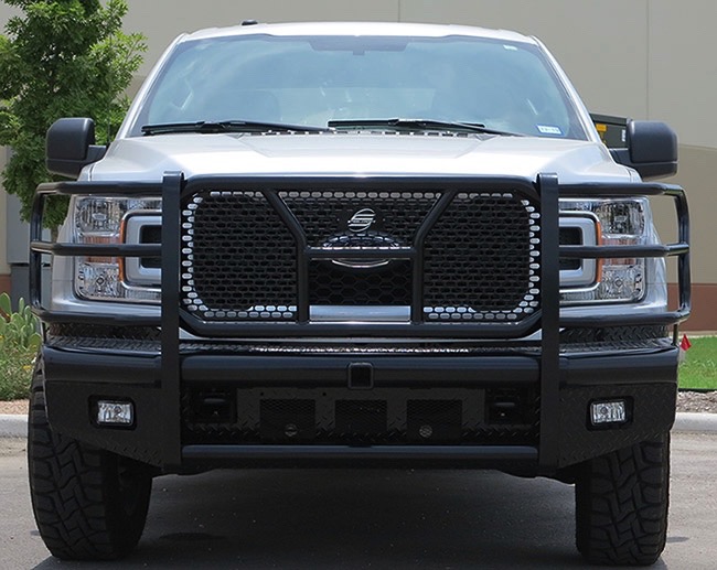 This bumper-grille combo is fabricated from a high-quality punch plate, not expanded metal mesh-like other manufacturers offer, and it allows your to retain the access to tow hooks and fog lights you depend on. Your Steelcraft Bumper is electrocoated, which means every inch of the steel is bonded to a protective layer. It's then coated with a black-powder, semi-gloss finish.