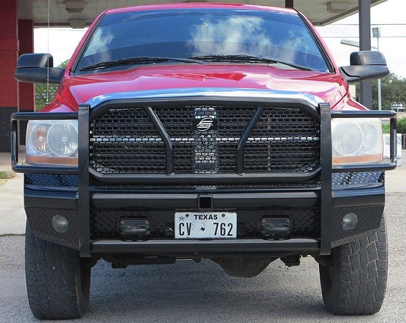 This bumper-grille combo is fabricated from a high-quality punch plate, not expanded metal mesh-like other manufacturers offer, and it allows your to retain the access to tow hooks and fog lights you depend on. Your Steelcraft Bumper is electrocoated, which means every inch of the steel is bonded to a protective layer. It's then coated with a black-powder, semi-gloss finish.