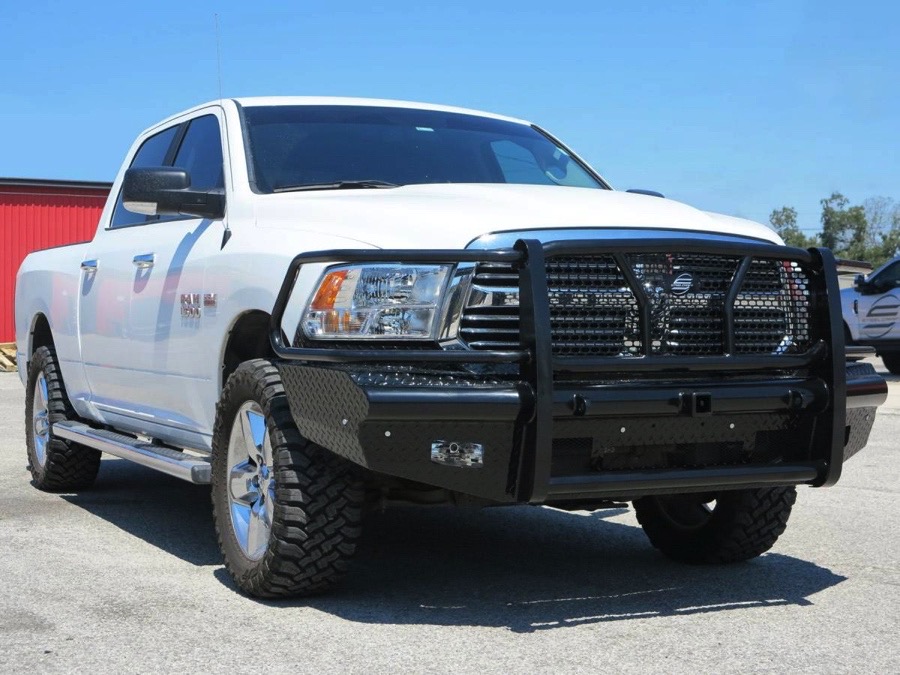 This bumper-grille combo is fabricated from a high-quality punch plate, not expanded metal mesh-like other manufacturers offer, and it allows your to retain the access to tow hooks and fog lights you depend on. Your Steelcraft Bumper is electrocoated, which means every inch of the steel is bonded to a protective layer. It's then coated with a black-powder, semi-gloss finish.