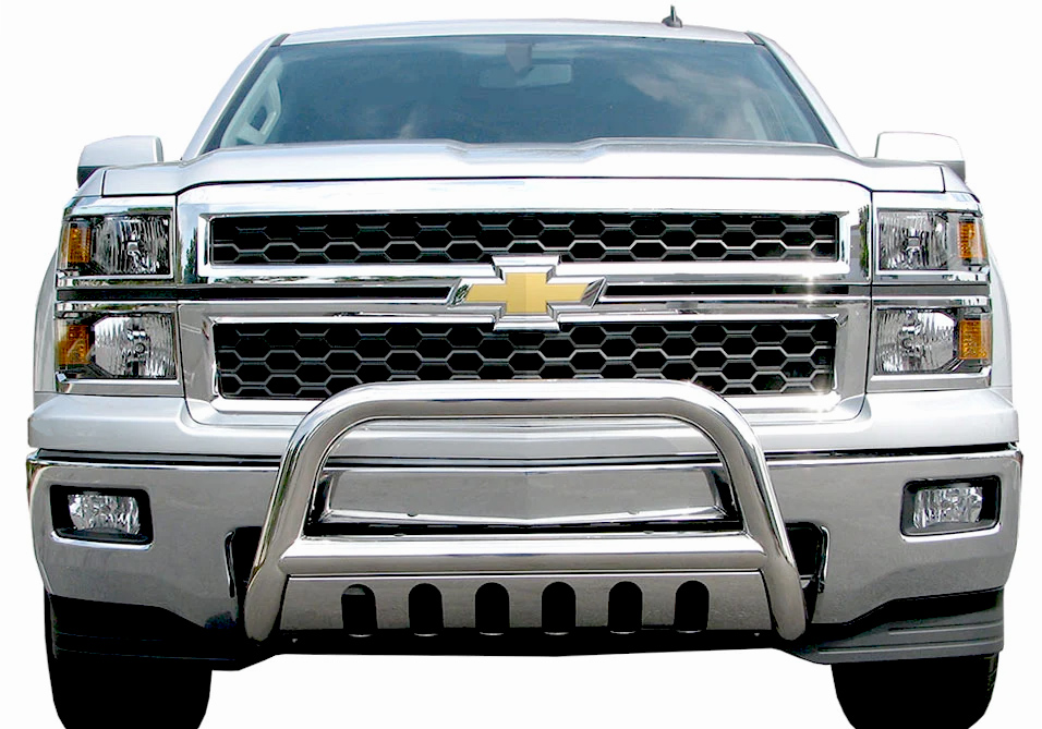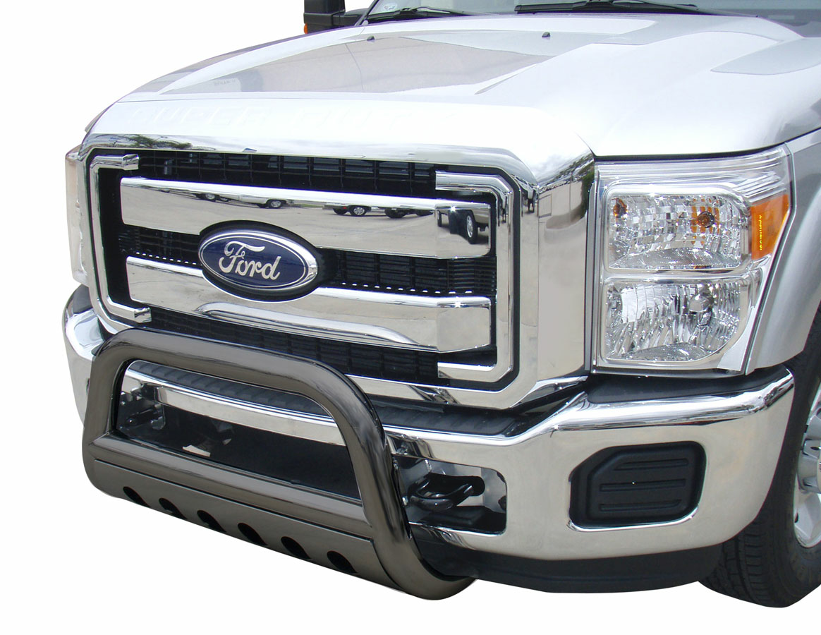 This bull bar is designed to match the front end of your specific make and model vehicle, so installation is a breeze. On the majority of vehicles, no cutting or drilling is required and the bull bar bolts straight to the existing holes in your truck or SUV's frame. You can choose the best finish to complete your truck's look: gleaming, polished Stainless Steel or an aggressive, stealthy Black Powder Coat. The Polished Stainless finish carries a Lifetime Warranty, and the Black Powder Coat carries a 3-Year Warranty.