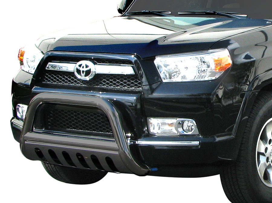 This bull bar is designed to match the front end of your specific make and model vehicle, so installation is a breeze. On the majority of vehicles, no cutting or drilling is required and the bull bar bolts straight to the existing holes in your truck or SUV's frame. You can choose the best finish to complete your truck's look: gleaming, polished Stainless Steel or an aggressive, stealthy Black Powder Coat. The Polished Stainless finish carries a Lifetime Warranty, and the Black Powder Coat carries a 3-Year Warranty.