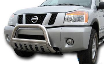 This bull bar is designed to match the front end of your specific make and model vehicle, so installation is a breeze. On the majority of vehicles, no cutting or drilling is required and the bull bar bolts straight to the existing holes in your truck or SUV's frame. You can choose the best finish to complete your truck's look: gleaming, polished Stainless Steel or an aggressive, stealthy Black Powder Coat. The Polished Stainless finish carries a Lifetime Warranty, and the Black Powder Coat carries a 3-Year Warranty.