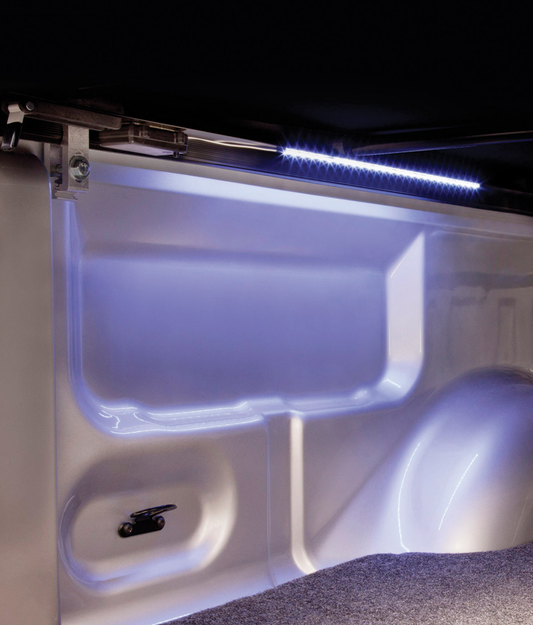 No more poking around in the dark. Let there be light… enduring, incredibly bright, white LED light that pours over all your cargo with a simple flip of a finger. See all your gear in its full glory with the TruXedo B-Light Tonneau Lighting System.