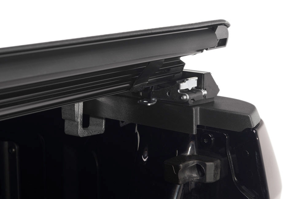 - Cover rolls up in seconds for full bed access