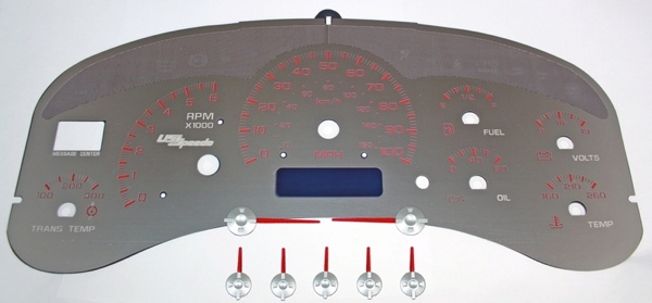 Each kit is custom fabricated to perfectly align with your exact sedan, truck, van, crossover or SUV. This attention to detail also ensures your original backlighting is retained for optimal safety. Choose either blue, red or white for your gauge face, then select from multiple needle colors and hub options.