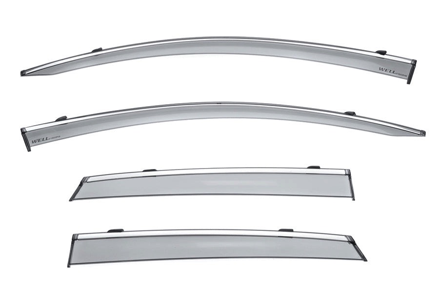 Whether driving to work or on a weekend adventure, having some fresh air along the morning commute is amazing, and the WELLVisors Tape-On Window Deflectors make it easy to let fresh air inside your vehicle while keeping moisture out. Each deflector is engineered using strong, but lightweight Polycarbonate and is designed with a Smoke tint finish.