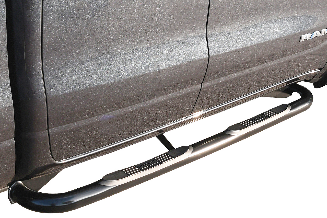 Your Westin E-Series Nerf Step Bars are made from 3-inch stainless or mild steel tubing that's tailored to suit your specific vehicle. For stainless steel models, these tubes are polished to a mirror finish, while mild applications are finished with a durable Black Powder Coat. E-Series tubes are designed to be substantially stronger than many other tube bars on the market and feature stepping pads that are affixed to a recess in the tube.