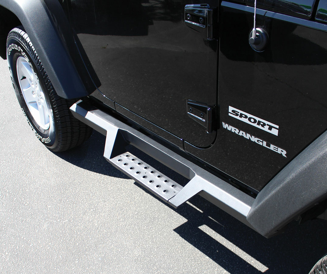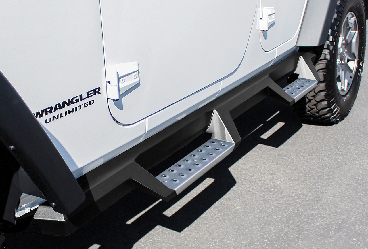 - Increase traction with detachable punch-plate step pads, in Textured Black or Stainless Steel