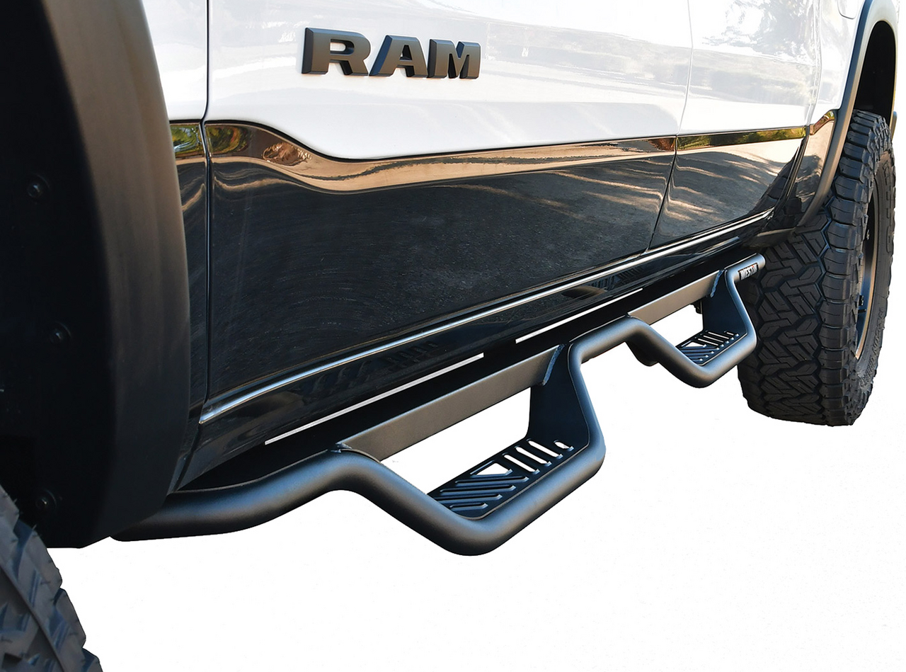 Step into or out of your truck with the support you need using the 4-inch-wide step plates, which are expertly designed for durability. Every step comes fashionably dropped along the 1.5-inch steel tube that lines the cab. Enjoy a rust-resistant Black Powder Coat finish, and a simple bolt-on installation with all needed tools enclosed for your convenience.