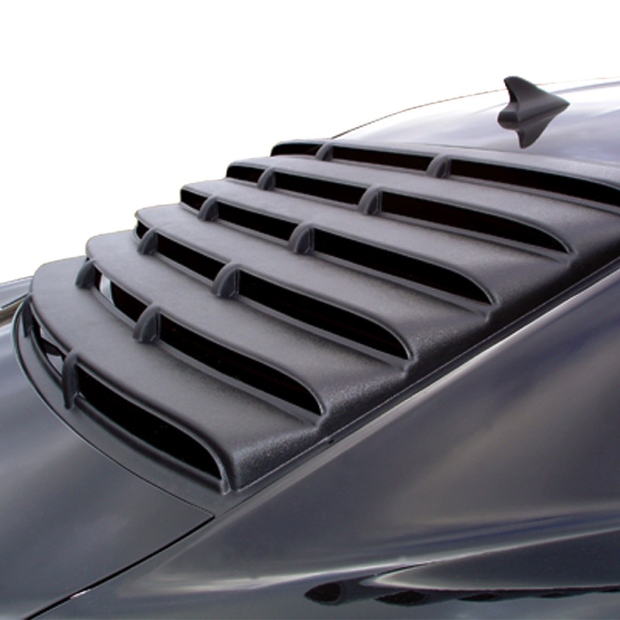 Choose from three finishes: Matte Black Aluminum, Textured Black ABS or Smooth Black ABS. Although any of the three treatments can be painted, the Smooth Black ABS louver must be painted, so plan on getting it sprayed prior to installation. While the aggressively angled design adds privacy and blocks out heat, it won't alter your rear visibility from the driver's seat.